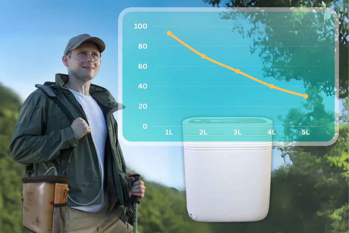 Automatic differential pressure compensation algorithm, the plateau at an altitude of 5500 meters can still continuously produce a stable high oxygen concentration of 93%±3%.
